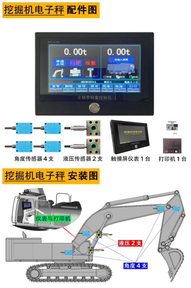 挖掘机称重系统,是挖掘机工作时防超载的计量装置,通过实时重量监测,可以有效防止装车时的超载。广泛应用于矿山车辆防止超载,货场堆料重量计量,土方装载防止超载等。